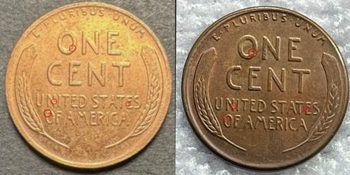 Striking on Non-Magnetic Blanks: Counterfeiters use copper or bronze blanks to strike fake coins. Unlike genuine 1943 steel cents that are magnetic, these fakes will not stick to a magnet as if genuine copper.