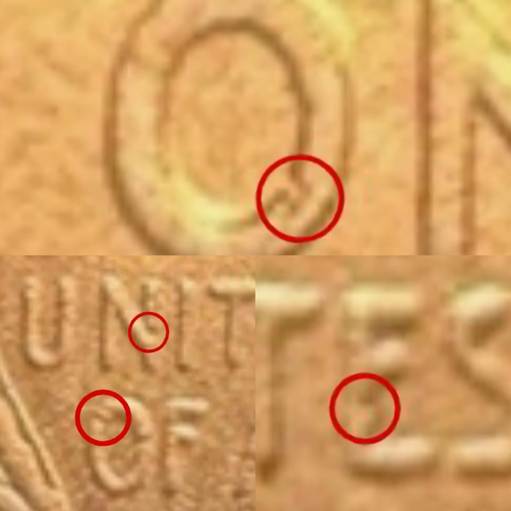To check if your coin may belong to this “fugazi” (i.e. “fake”), look for those common marks highlighted above in red.