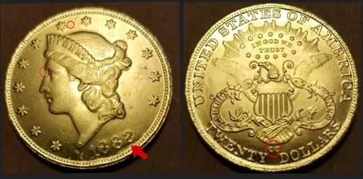 The next example was sent to me by a friend. Highlighted obverse markers match the previous “copy.”