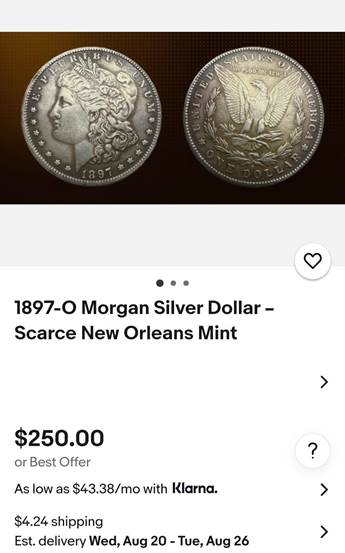 Image from an 1880-O courtesy of my friend Dave Jordan that shares a common reverse to the 1897-O listed on eBay.