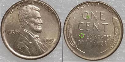 Interestingly this reverse was utilized with and without the “VDB” initials! This 1914-D and 1955 DDO share the “IN-Line” reverse with no remnants of the VDB initials.